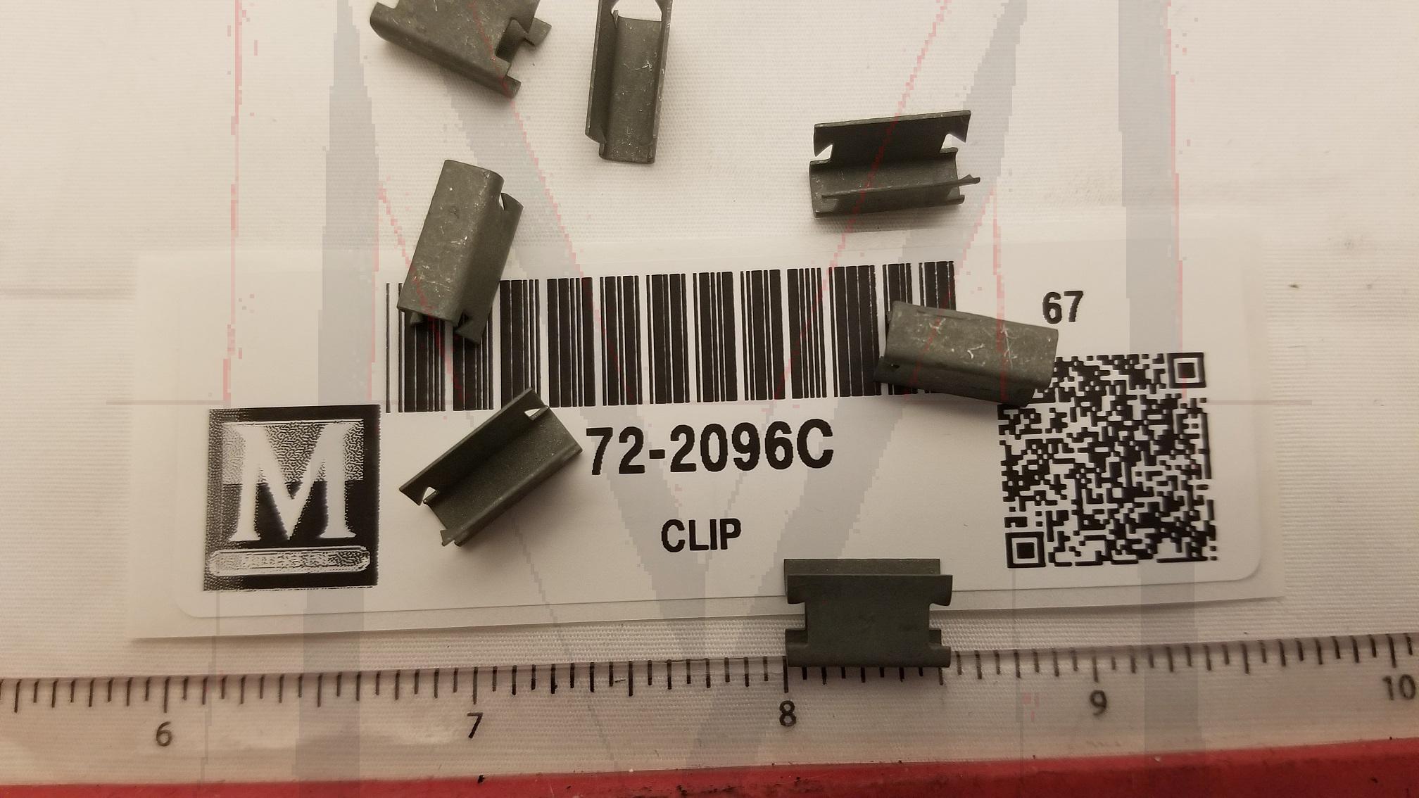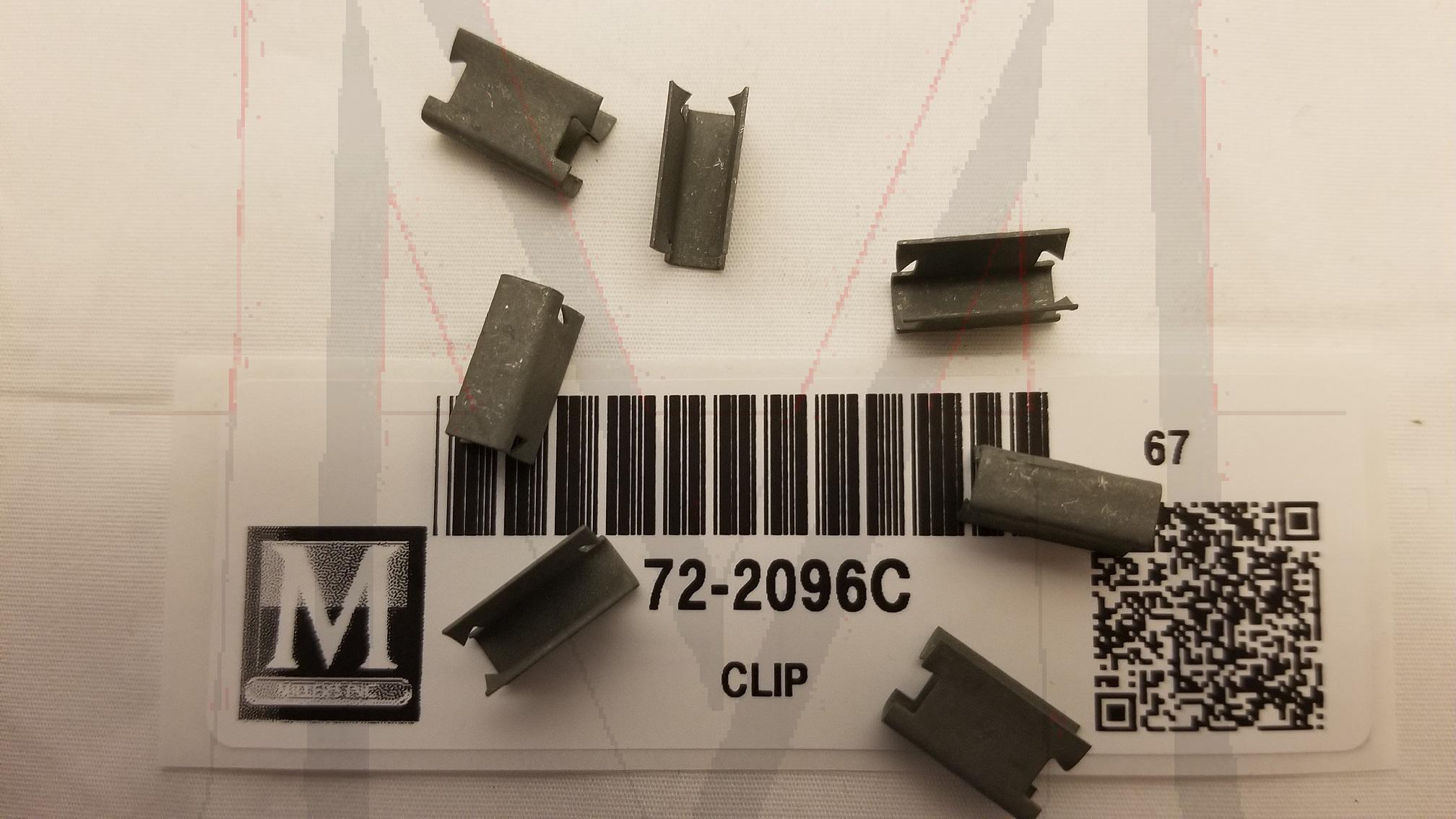 CLIP TO RETAIN INNER TOP DOOR MOULDING ON DOOR PANEL # 72-2096L & R. 3 PER DOOR, 6 PER CAR. SEE PICTURE FOR MOULDING.